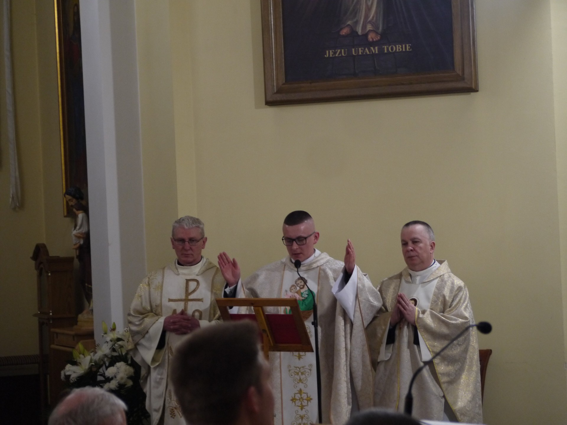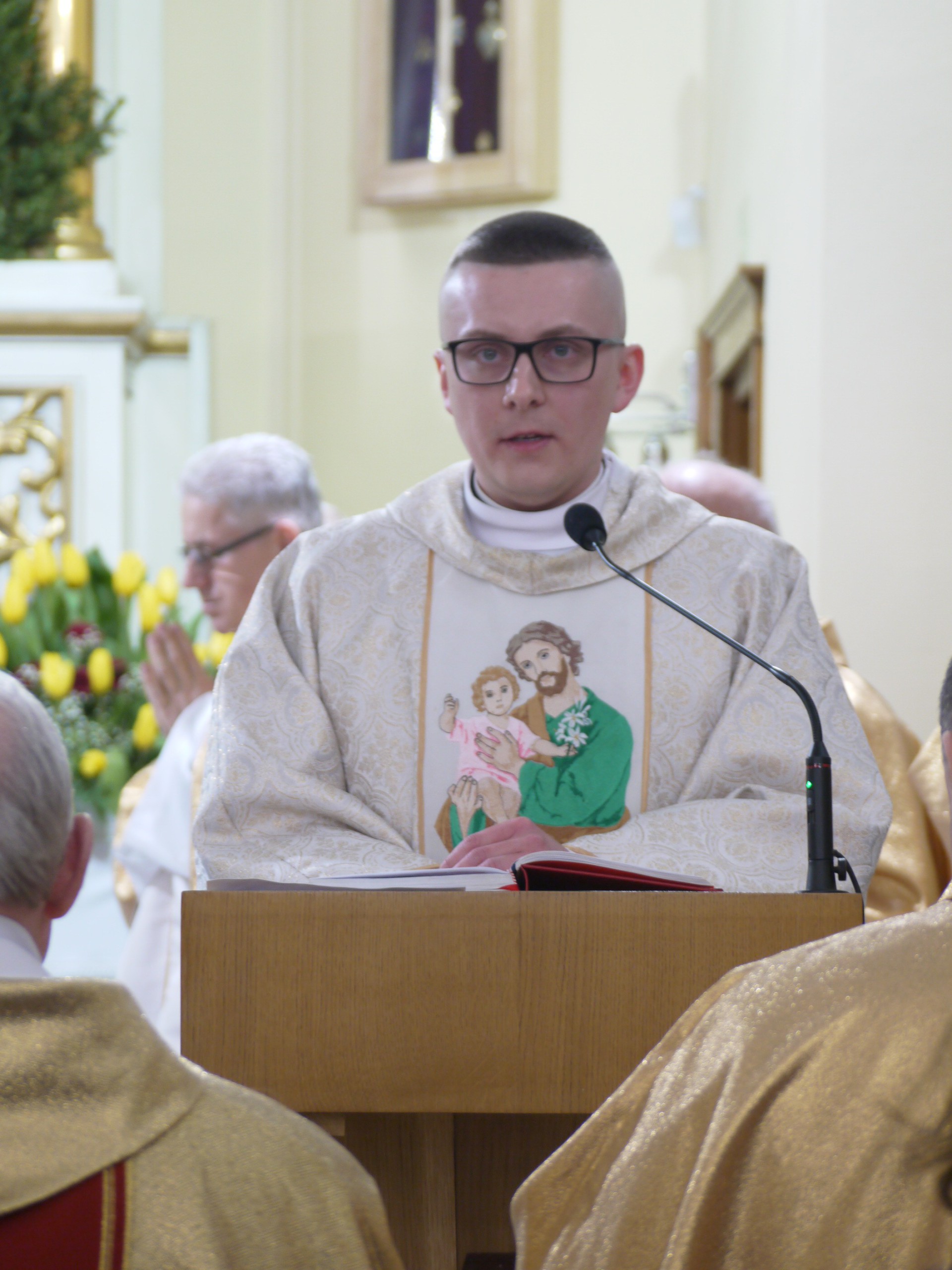Ks. Kacper mówił o tym, że naśladując Św. Józefa powinniśmy z wytrwałością i prostotą przyjmować wolę Bożą, a z Eucharystii czerpać moc i siłę do podejmowania swoich obowiązków.