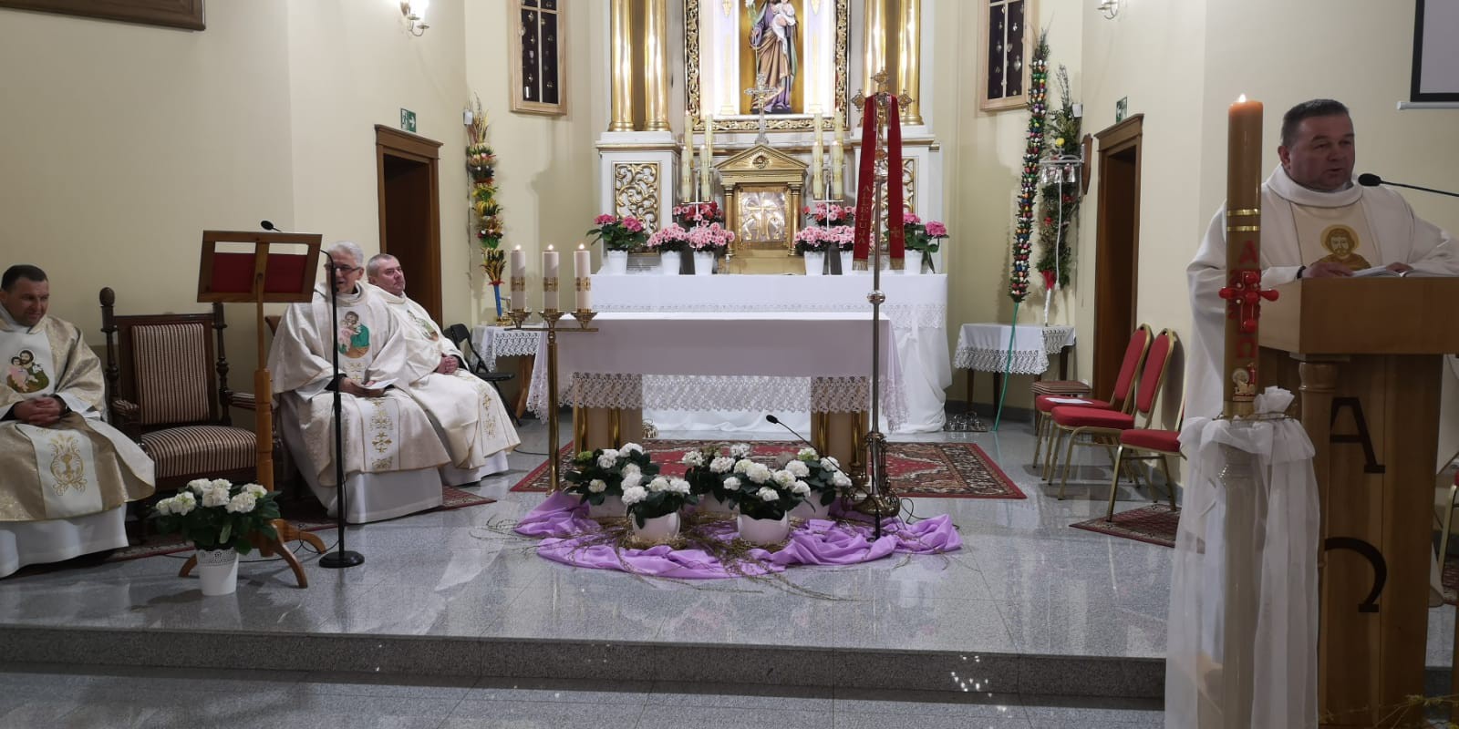 Wczoraj (19 kwietnia) w naszym sanktuarium odbył się kolejny „Wieczór ze Św. Józefem”. Spotkanie modlitewne przebiegało pod hasłem: „Święty Józefie, Patronie wygnańców, módl się za nami!”, a jego głównym gościem był ks. Tomasz z Ukrainy. Za wstawiennictwem Św. Józefa wspólnie prosiliśmy Boga o pokój w Ukrainie. Polecaliśmy Mu również wszystkich jej mieszkańców, zwłaszcza tych, którzy musieli opuścić ojczyznę i znaleźć schronienie poza jej granicami. Św. Józef doskonale rozumie ich sytuację. Razem z Maryją i Jezusem uciekał do Egiptu, aby ochronić życie Syna Bożego przed śmiercią z rozkazu Króla Heroda.