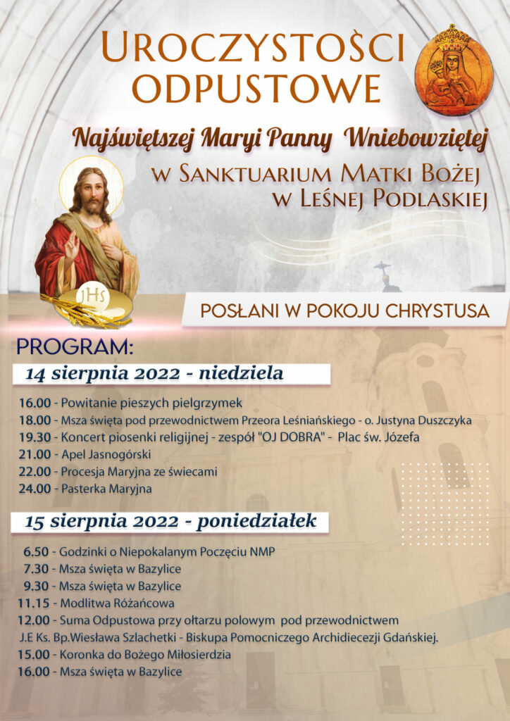 Szczegóły dotyczące nabożeństw odpustowych w Leśnej Podlaskiej znajdują się na poniższym plakacie.