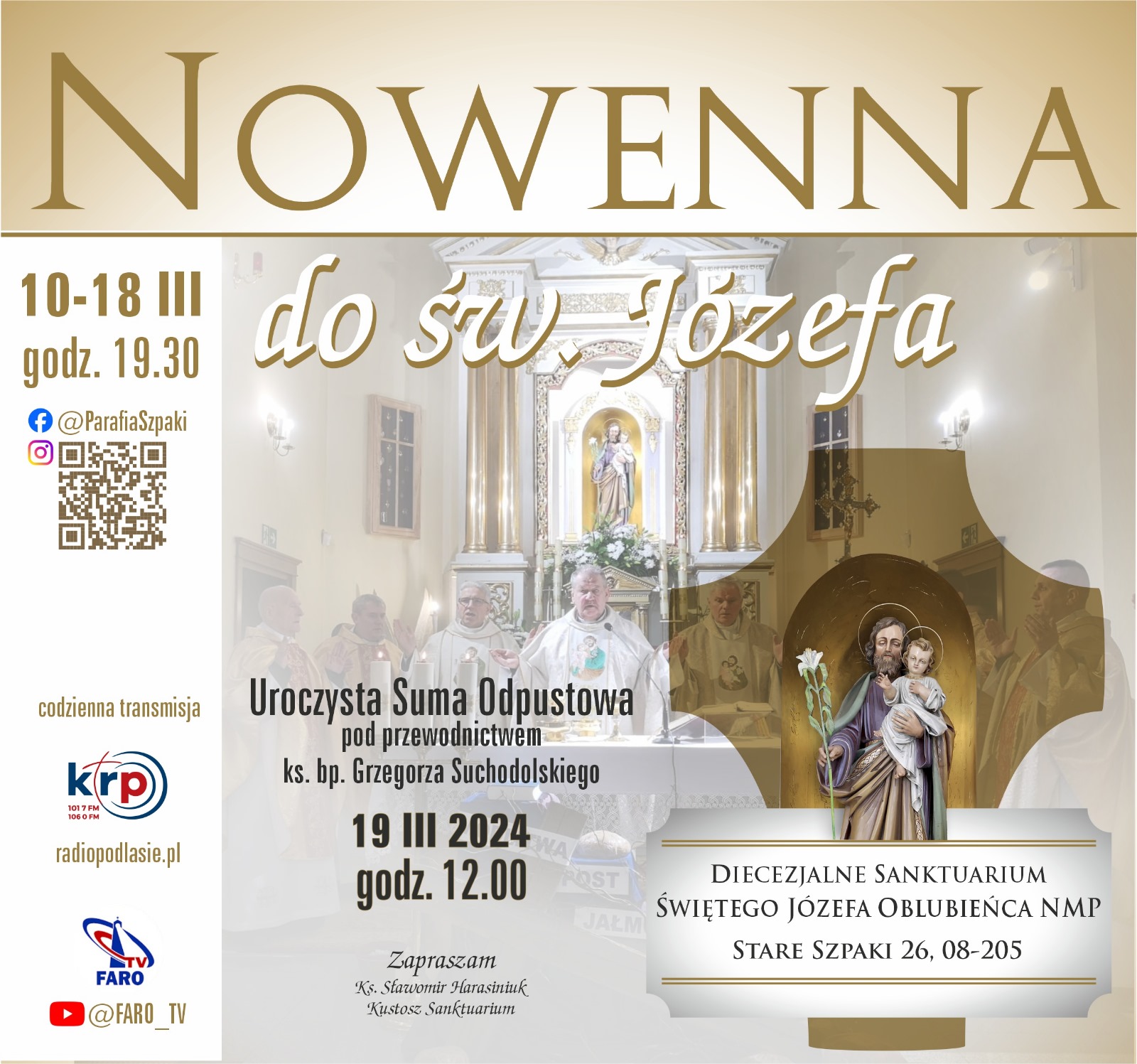 Zapraszamy na doroczną nowennę w Diecezjalnym Sanktuarium Świętego Józefa w Starych Szpakach i wieńczącą ją uroczystość ku czci Oblubieńca Najświętszej Maryi Panny!